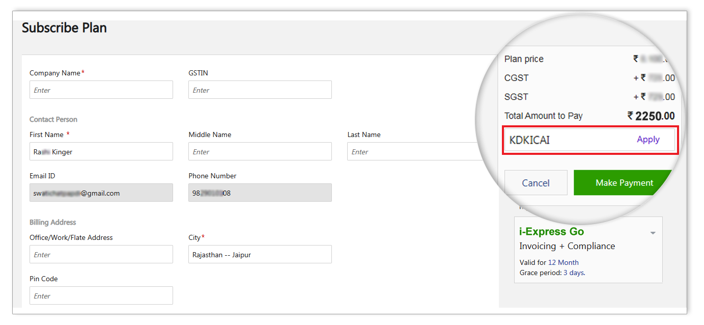 Step 3: Fill the Plan Subscription Page and apply the Voucher Code as